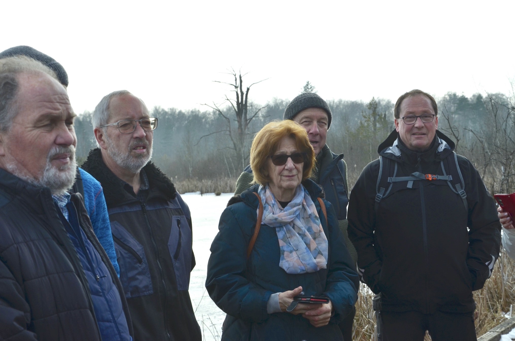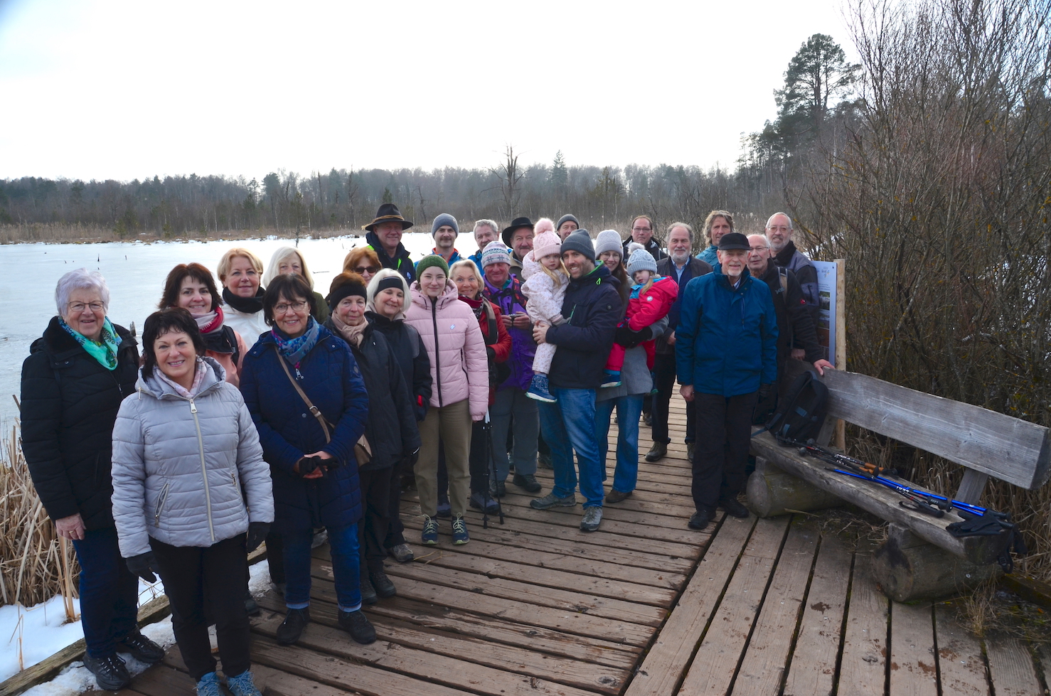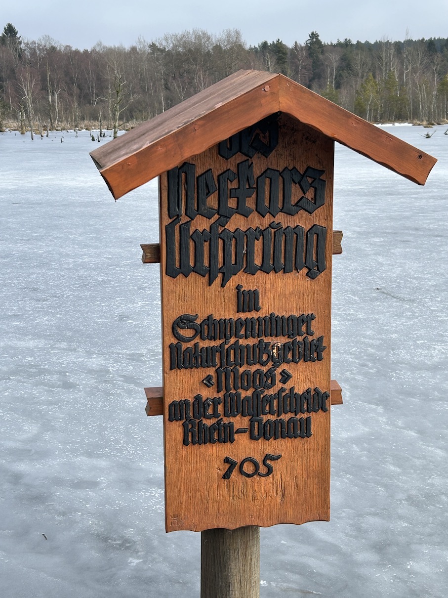 Eine große Gruppe des Schwäbischen Albvereins Schömberg traf sich zum Beginn des Wanderjahres 2026. Da der Rundweg im Naturschutzgebiet teilweise vereist war wurde die beabsichtigte Strecke abgeändert und die symbolische Neckarquelle im Park mit einbezogen. Die Wanderung ging über den Holzsteg mit wunderbarer Sicht über den magisch wirkenden zugefrorenen See. Die im Moos wachsenden Bäume und Pflanzen wie Birken, breitblättrige Rohrkolben, Wollgras und verschiedene Moosarten boten im gefrorenen Zustand ein eindrucksvolles Bild. Die Bildung und Entstehung des Hochmoores und dessen Nutzung wurde vom Wanderführer Hartwig Speck anschaulich erklärt. Die europäische Wasserscheide, welche die Zuläufe von Rhein und Donau trennt, verläuft durch das wildromantische Moor, in welchem sich auch der Ursprung des 362km Neckars befindet. Bei der anschließenden Einkehr geizte die Wandergruppe nicht mit Lob für den Wanderführer.